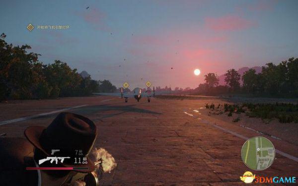 将两辆黑色的车摧毁后,再去射击黄颜色的车,直到将其停下,