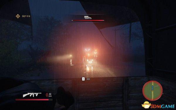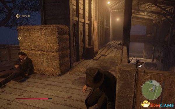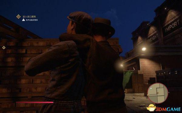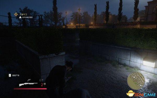 按X潜行,跟在山姆后面潜入停车场,两人制定了计划,山姆负责吸引守卫,