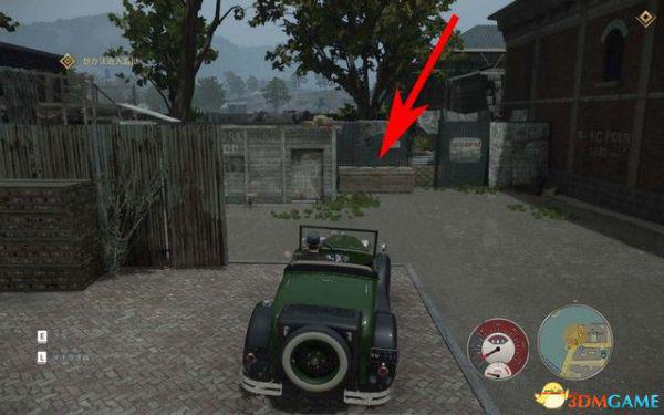 开到监狱旁边后,如下图箭头所指,翻过围墙,进去。