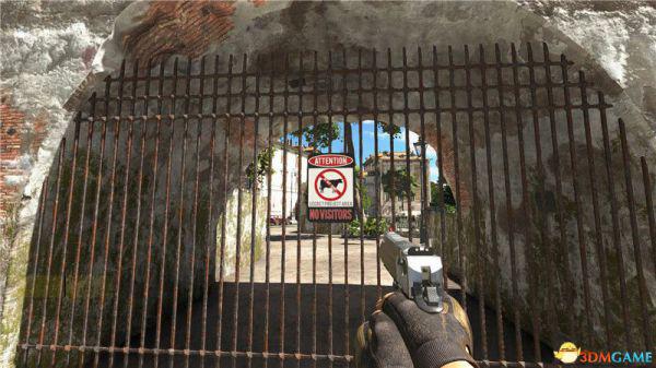 当铁栅栏门打开后,你可以穿过这个区域,之后进入一个小巷。