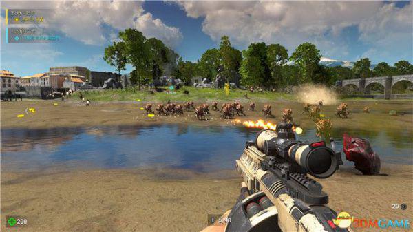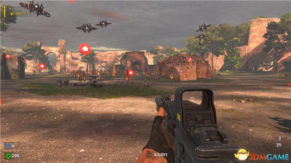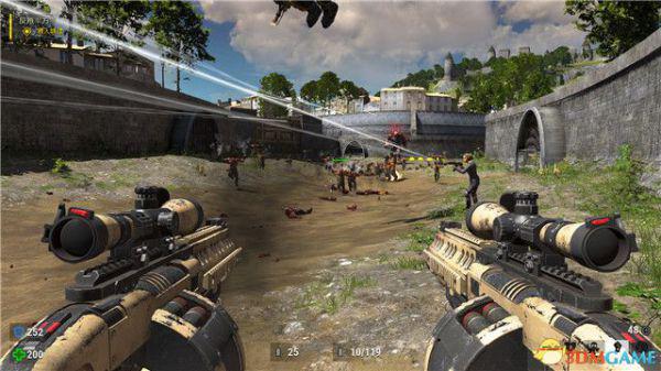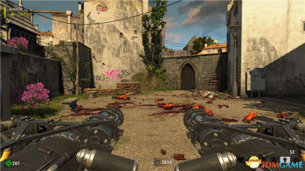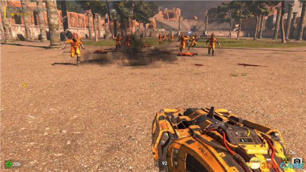 敌人成群结队,但它们都是无脑正面直冲过来,你只需要保持弹药数量,边退边打,就可以化险为夷。