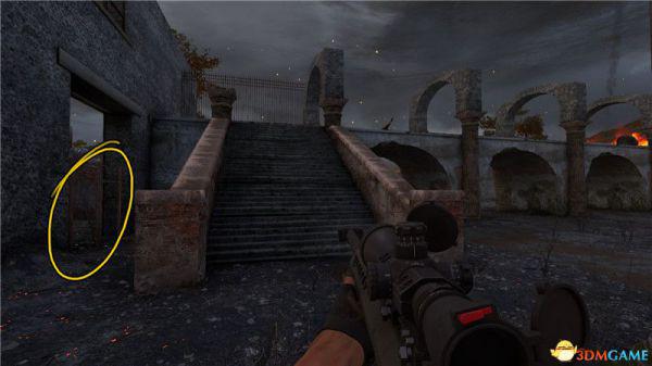 从获得狙击枪这个位置一直朝前走右转。