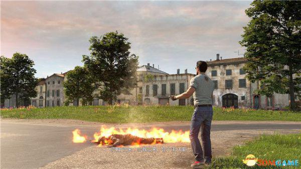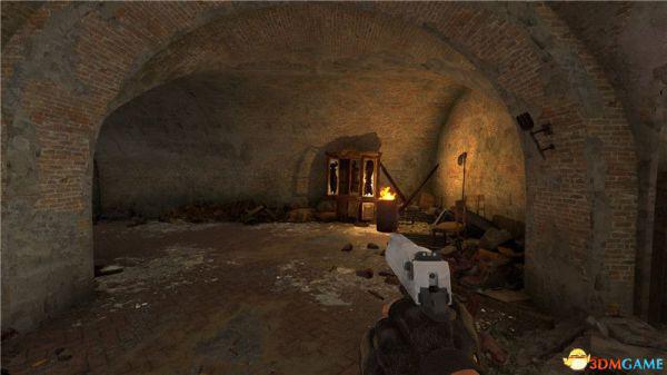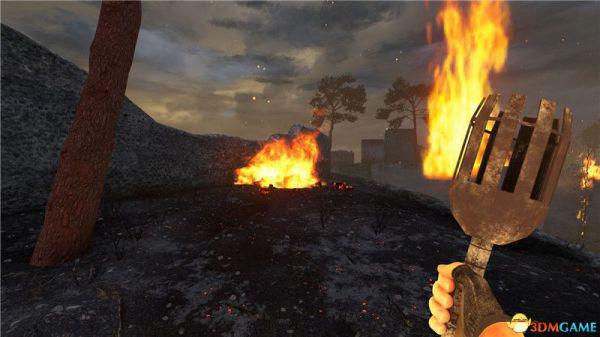 接下来朝左走找到附近的一个火堆点燃火炬。