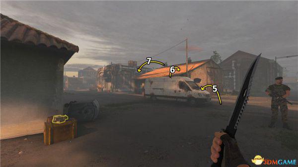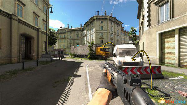 这个装备位于卡车上面,你需要从这里开始跳跃过去。