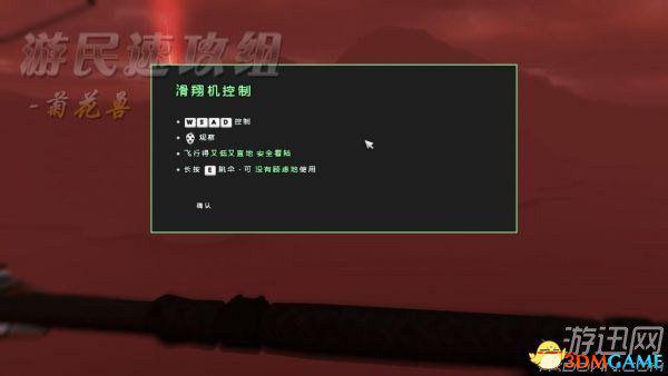 如上图所示为滑翔机控制,WSAD不用说,鼠标控制也不用说,最后一项:跳伞,其实就是直接跳下去,而由于技能原因无视高坠落。还有一点,那就是,点W俯 冲,然后再点S拉起来,可以用来躲避障碍物,具体是怎样躲避的,可以自己实践一下试试,不仅如此,这样操作还能有效避免坠落。在飞往目的地的途中会遇到狙 击手攻击你,无视他们,飞过去,要是被撞下来了就游泳过去,只是耗时长短问题而已。不过水中有鲨鱼,它们攻击你的时候会触发QTE,连点空格即可将之击 杀。