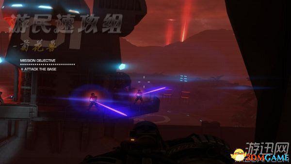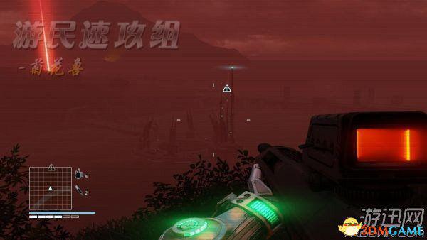 上一个任务结束后,这个任务自动接受,于是跑到目的地开始任务。可以看到,目的地处的敌人是十分杂乱的,数量也无法估算。所以点Z打开面甲然后用鼠标滚轮 调整放大倍数,多观察一会儿再出去,完了最好先用狙击枪杀一些来。首要目标自然是击杀狙击手,狙击手的图标为眼睛。搞定他们之后,来到滑翔翼旁边点E进行 互动使用。