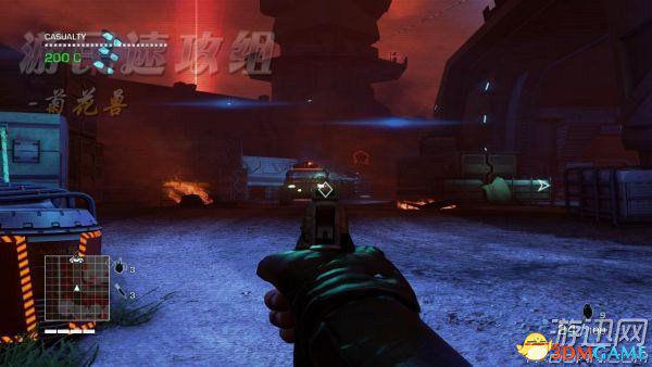 烧掉一个之后还有其他的,但是这时候要小心这些血龙!烧的时候时刻注意他们的存在,被发现你会死的很难看。碰见挡路的就用心脏引开他们,依靠之前屯起来的 心脏,应该够用了。如果想要节约时间,那么冒点险,和他们迂回作战。他们在地图上被标记了的,一旦对你冲过来,那么在地图上就会闪动,由于你有多个目标, 在他们闪动的时候,就迅速跑到另一个目标,如此循环多次即可。完成之后不要管其他的!立即跑到任务目标处召唤电梯,在等电梯的时候,血龙会对你发起攻击, 那么,就随便找个掩体跟他兜圈子就行了,挨打了不要紧,点Q,就算没有血包也是可以回血的,不过回血的时间和血量就……电梯来了之后上车,你现在甚至可以 干掉那头血龙了……不过别理他,现在要面临的,是上面的士兵,这些士兵不难解决,射击爆炸物就好。到站之后开车冲出去过关。