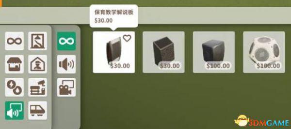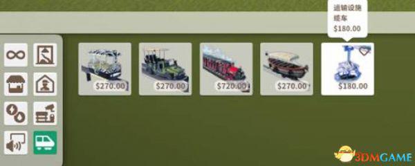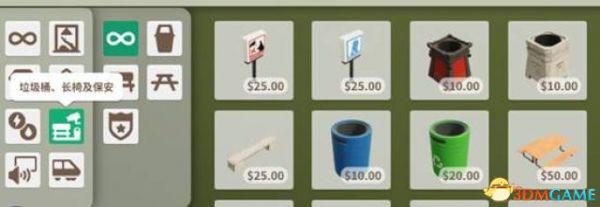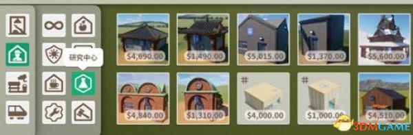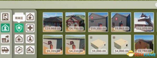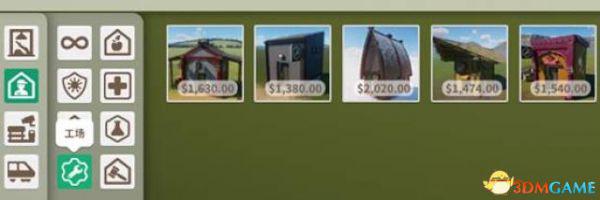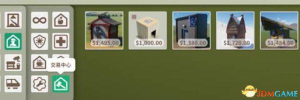 本游戏中所有的建筑设施(除了道路和地形),都可以在此处找到,点击需要的项目,然后在对应的地点放置即可。