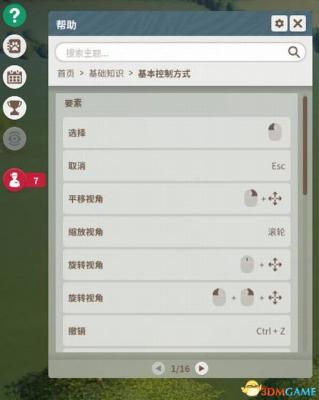 首先看到游戏左上角,左上角的第一项是帮助页面。