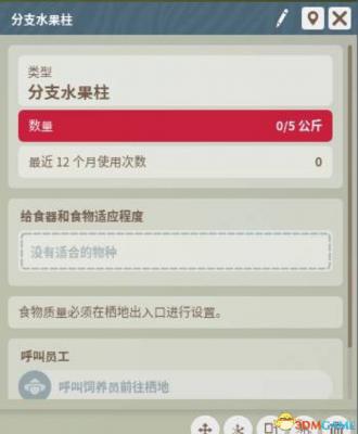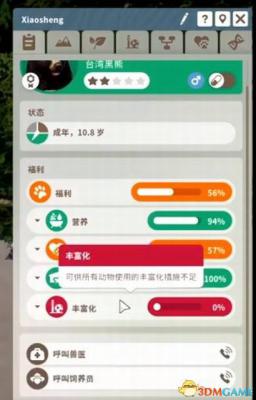有时遇到栖地的食物或水源不足时,需要手动点击呼叫饲养员进行补充。