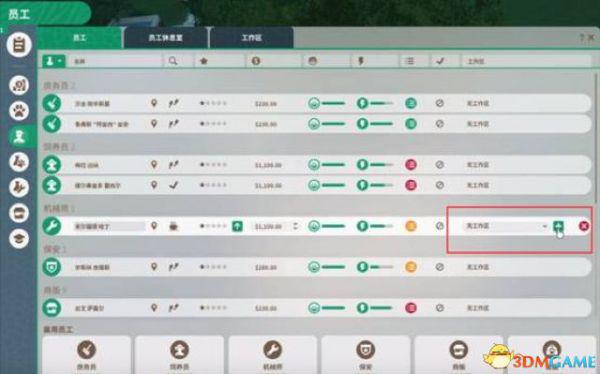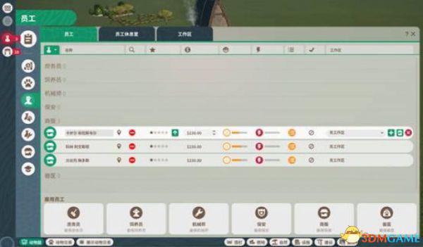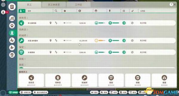 建造完员工设施后,接着就该雇佣员工了,我们这里先雇佣一下庶务员、机械师、保安和兽医4种各1名,