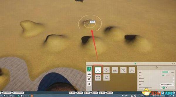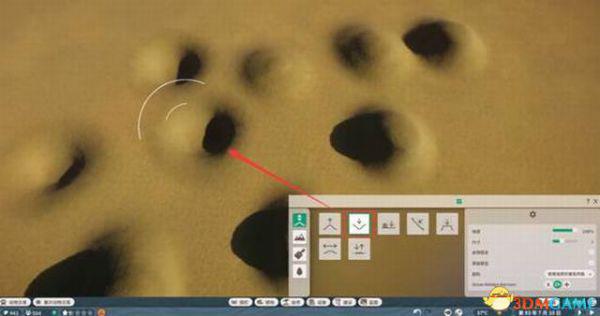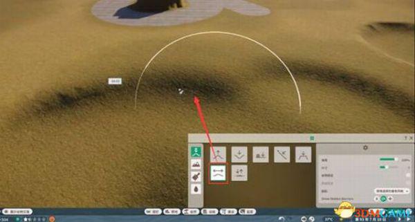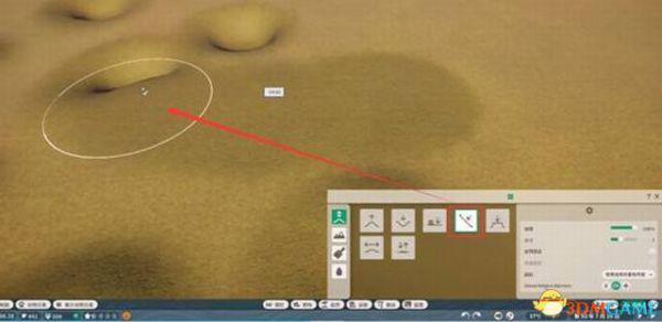 下一项是展平,也比较好理解,会把圆圈内的地形全都铺平至与鼠标中心一样的高度。