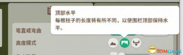 高度模式:会使围栏在放置时自动根据模式调节两根柱子的长度,以保持长度相等或实现顶部水平等。