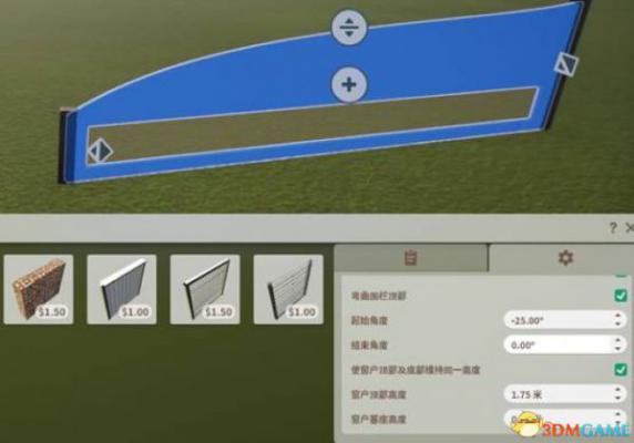 第二个菜单中的弯曲围栏顶部和调整窗户高度,可以使围栏顶部成曲状,以及改变窗户在围栏中的所占高度。
