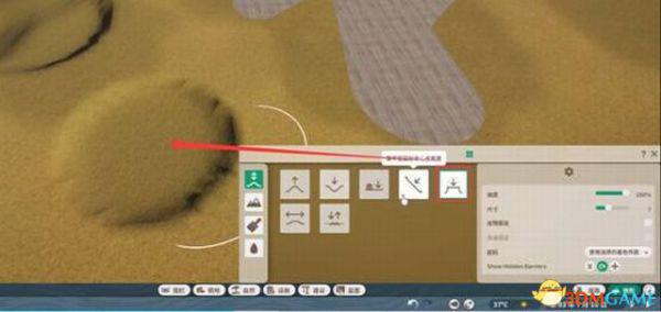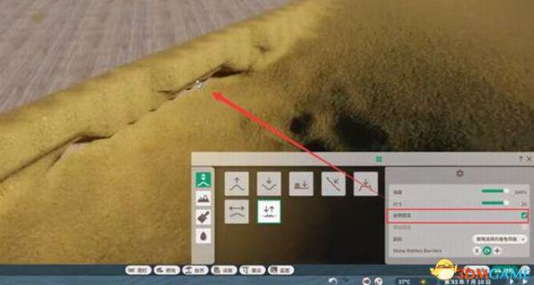 第二个选项,形成隧道,打开后在铺设道路时会自动形成一个地面凹陷,形成类似于隧道的路面,也属于破坏地形的选项。