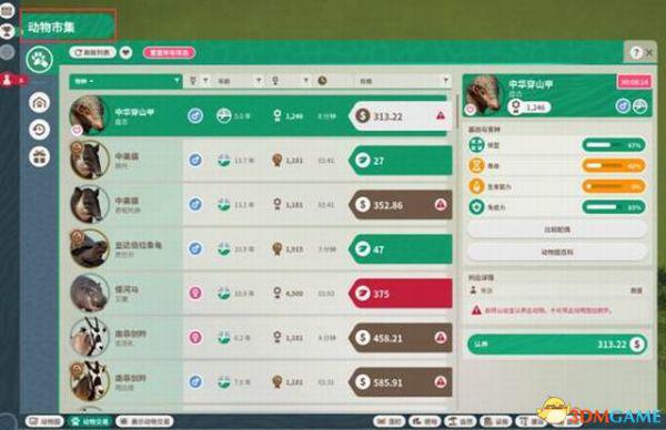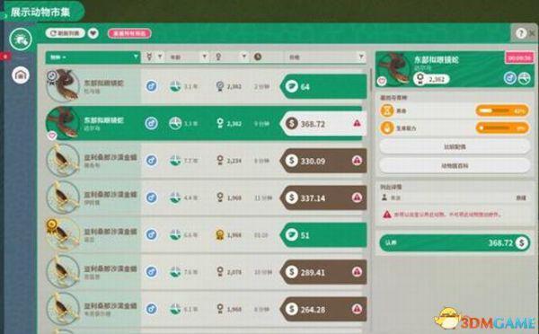 在这里可以查看当前可供购买的所有物种的详细信息,包括它们当前的健康状况以及它们的价格等。