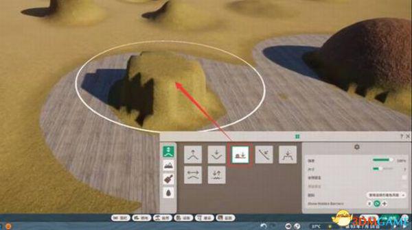 下一项是整平,能够使一些高突的地形顶部变得平整,以方便在上面建造设施。