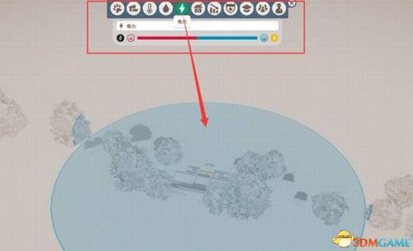 游戏中所有设施都需要通电才能运行,而开始的动物园大门会为我们提供一个免费的范围通电,