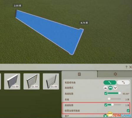高度贴靠:设置围栏高度时每次拖动改变的高度量。
