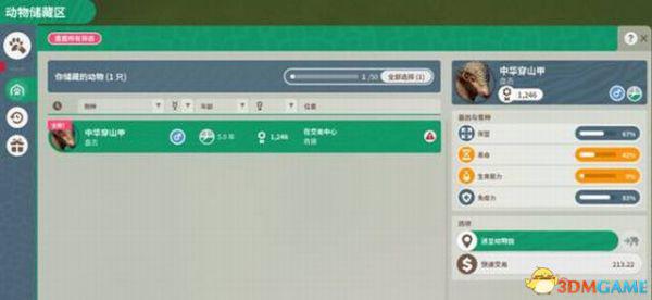 第二项是动物百科,在这里你可以找到所有物种的相关信息,包括其自然栖地、详细数据、研究状态和种间丰富化等。