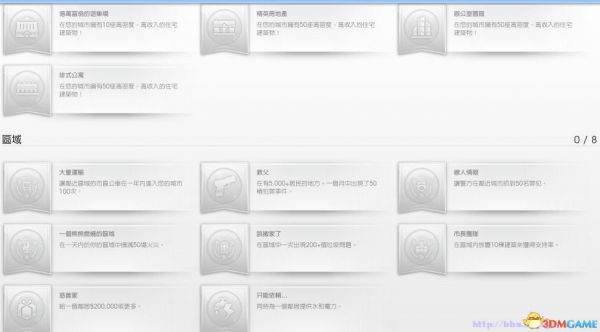 *因官方暂时关闭了互动部分,区域成就暂时只能由单城达到成就目标才能激活成就图标
