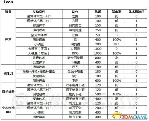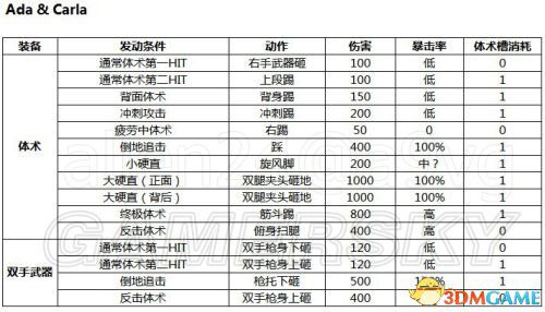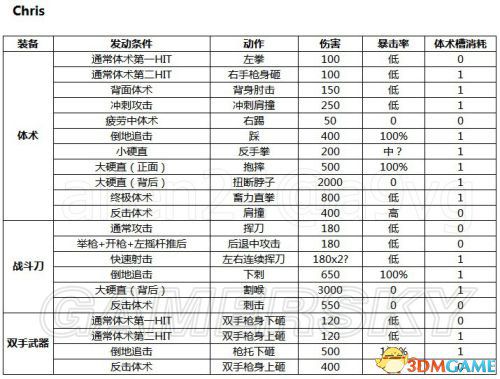 生化危机6 全人物体术伤害+暴击率+体术槽消耗数据总