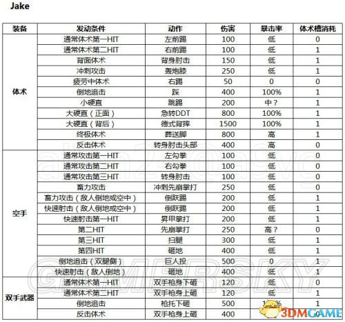 - 除了100%暴击的招式外一目了然外,其他招式的暴击率为个人凭经验的主观感觉