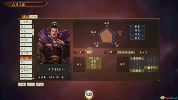 在《三国志14》这款游戏中,有很多小伙伴都喜欢在游戏中招募武将为自己所用,玩家“abcdqqq2”带来了《三国志14》司马师武将点评,想要了解游戏中的司马师这一角色相关属性的小伙伴就来看看吧。