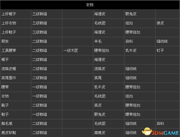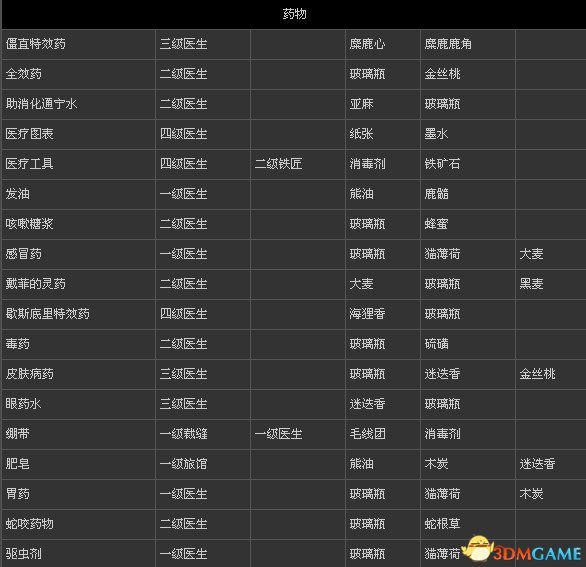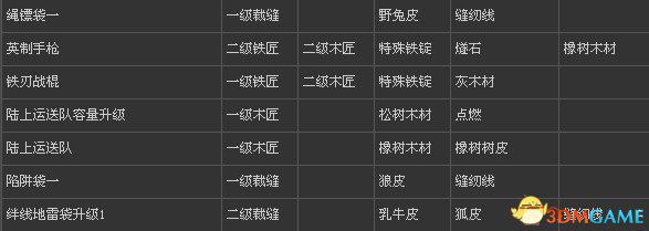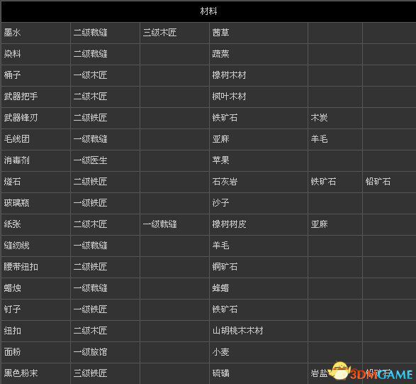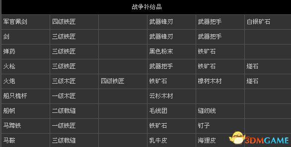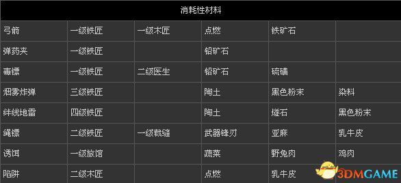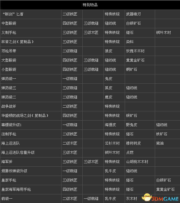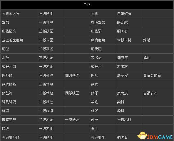 刺客信条3 全物品打造表