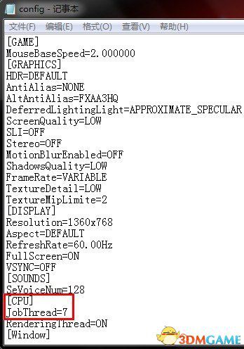 比如妳的电脑CPU处理器为 I7 系列 则修改成:JobThread=7
