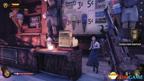各式各样的商店,虽然除了搜刮贩卖机之外没有实际上的用途,但却让城市的风貌更加丰富你很难得可以看到一款FPS游戏在剧情上能够吸引玩家们有着如此热烈的讨论,在《生化奇兵:无限》总计约8至10小时的游戏时间当中,剧情的份量可以说是相当地厚重,其中并包含了许多沉重且深刻的议题如:宗教狂热、种族歧视以及多元宇宙等等,题材不能说是新颖,在描写上是否具有深度这点也是见仁见智,但由于制作团队在游戏中表达了一个完整的论述以及一套自己的哲学,并且让严肃的剧情与游戏性有着漂亮的融合,让玩家们在进行游戏的同时会理所当然地去思考整个剧情的架构,并且会对一个个解开的谜底与最后的真相感到无比震惊。