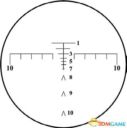 中间横线是测距横线和对应距离弹着点(测距横线参照目标肩宽约0.5米)