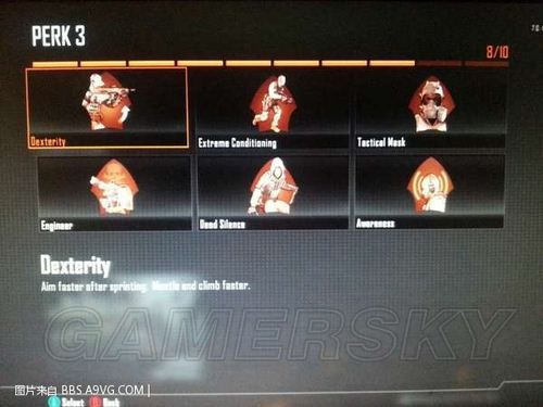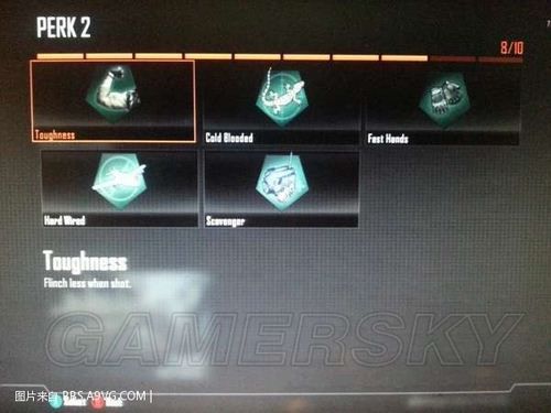 第一行:射击的时候减少后坐力,冷血(心跳感应目镜,频道感应器,目标取景器,传感器手雷所发现)快手(切换武器速度加快,还有捡起对方手雷重置引线功能)