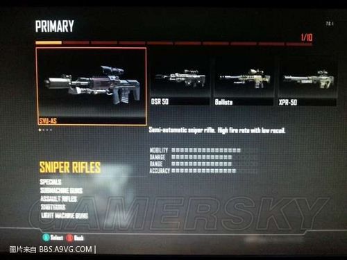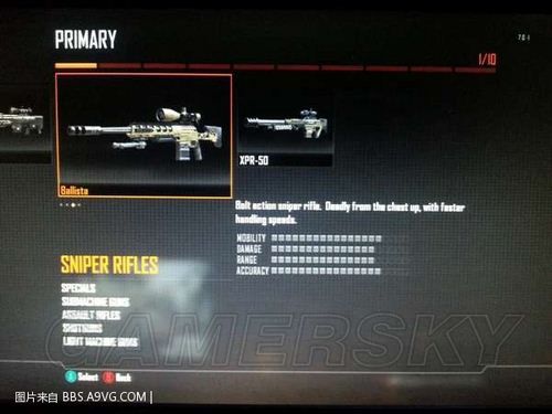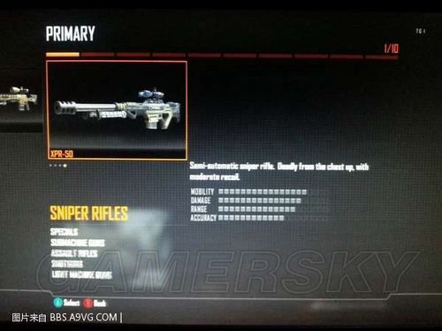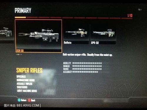 我在测试中只是试用了后三把枪,svd基本可以装备Acog当作点射的枪来使用,dsr50则是装备是跑动速度太慢,如同加装重机枪一样,而ballista开镜速度快,更容易作为冲锋使用,最后一把狙击步枪xpr-50才是真正意义上的.50,因为可以连发,子弹威力也很大,所以当作mw3的barret来使用是相当的有手感,也就是说mw3的巴雷特爱好者完全可以使用这把枪来找回这种快感,而dsr 50的区别就是部位的不同,dsr只要击中身体就可以挂,而xpr击中胸部才可以,当然高手们对于这个基本可以无视了,因为我看过Mroo0的视频,他的击杀部位基本都是胸部以上,如果有这样的技术完全可以使用xpr50和ballista,而不能做到的大可使用dsr,因为我发现我在老兵难度的试练中dsr的one shot one kill的几率比其他两把枪都要高,也就是说我在测试的时候击中对方腰部以上还是没有问题的。当然个人有个人爱好,我只是将我分析的数据写出来,用什么枪顺手还是看高手们自己决定,稍后我将会更新我的视频。