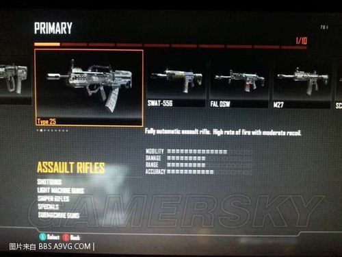这代我感觉枪支可能会偏向射速快的枪,就像战地3一样,射速越快,杀死对方的几率也会越高,所以战地增加射速快枪的后坐力,而在这代作品中,枪基本没有太大的后座力,所以射速快将会占有一席之地,可能重机枪和冲锋枪会成为主流枪支,而突击步枪大多属于点射类型的枪,所以近战未免有些吃亏,小地图还是需要在突击步枪加装单发连发转换器比较稳妥一点,毕竟近战三连发的枪很吃亏。另外有一把突击步枪叫做type25,先说个题外话,中国军队的步枪的名字都是以研发出来的那一年来起名,也就是说type95就是95年研发的突击步枪,而type25可能是2025年中国研发的步枪,这把枪射速超快非常霸气,加装红点或者目标标记目镜近距离中距离基本可以称霸天下,但远距离缺乏准度,子弹太散,所以大图一点都不适合,而冲锋枪有一把也成为了三连发的点射枪,三连发点射间隔时间短,精度高,但需要配合合理的目镜才能发挥真正的威力。