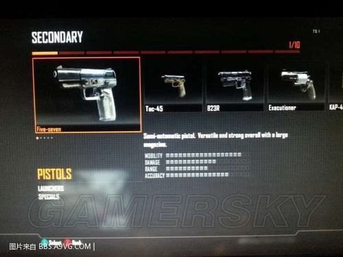 第二行:可以将副武器装备主要武器,可以将副武器栏装备两个配件,主武器可以装备三个配件