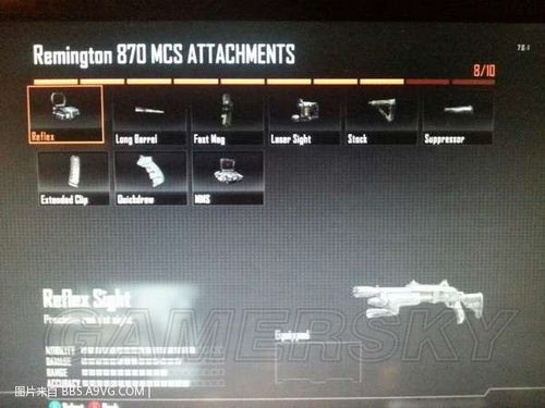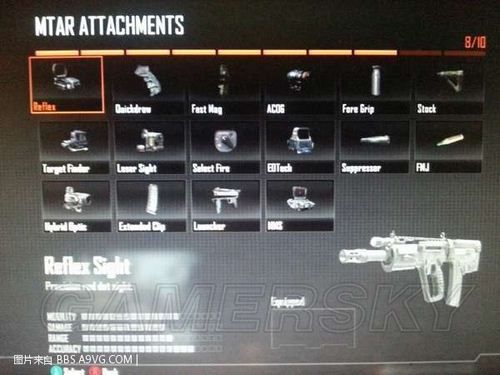 第二行:握把(带快速举枪功能的),子弹穿透,加长枪管,target finder(目标标记目镜),后枪托,加长弹夹