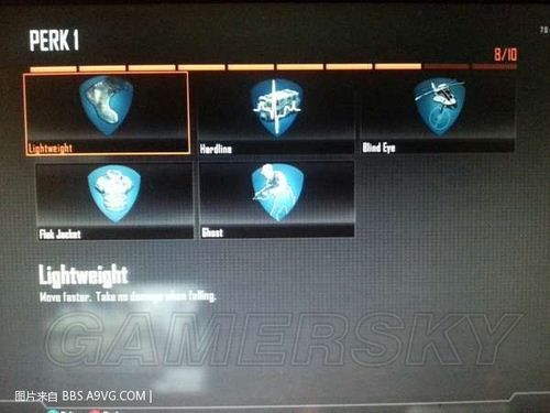 第一行:跑得快(坠落不受伤),得到更多连杀分数,盲眼技能