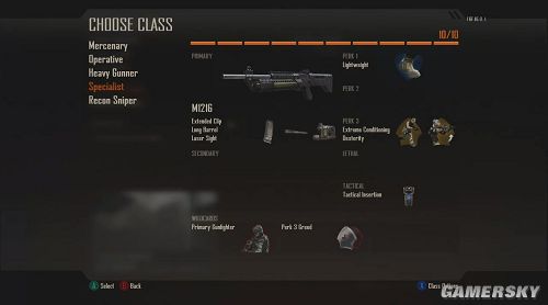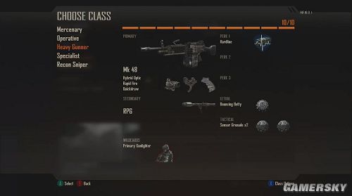 与之前的设定不同,《黑色行动2》中的Create-a-Class系统是基于点数设计的。每样道具,技能的升级或者是武器的修改都需要消耗点数。这就使得的开发人员得以从平衡各项武器数据的苦海中脱离出来,使得玩家作战更有多样性。