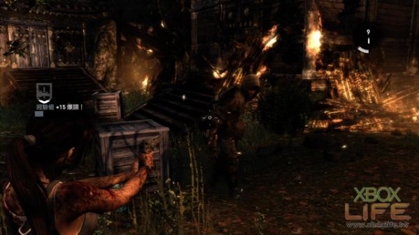 游戏开始没多久萝拉就有弓箭与手枪可以用,按LT键举武器、RS瞄準、RT射击的操作完全不卡手,武器切换也有如行云流水。与敌人交战时还能顺畅地熘到掩体后面防守。游戏採用TPS游戏常见的自动回復制度,因此就算是不擅长TPS游戏的玩家也可以轻松上手。比较可惜的是萝拉一开始似乎没有甚么帅气的近身技,希望游戏后期能学到。