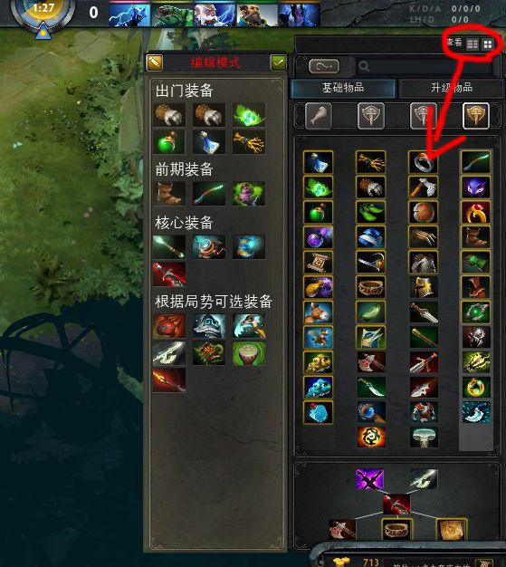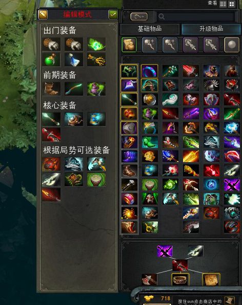 2—推荐装备的界面(1——推荐装备编辑器,可以直接将右边的装备拖进左边推荐,对于买装备有时候很省时间哦)