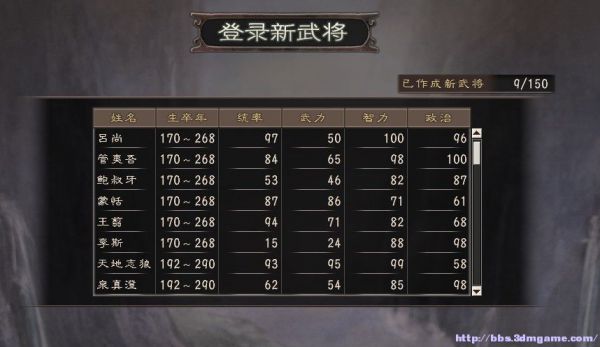岳飞、吕尚、管夷吾、鲍叔牙、蒙恬、王翦、李斯 特典《龙狼传》九名为正版追加均为自行制作新武将。