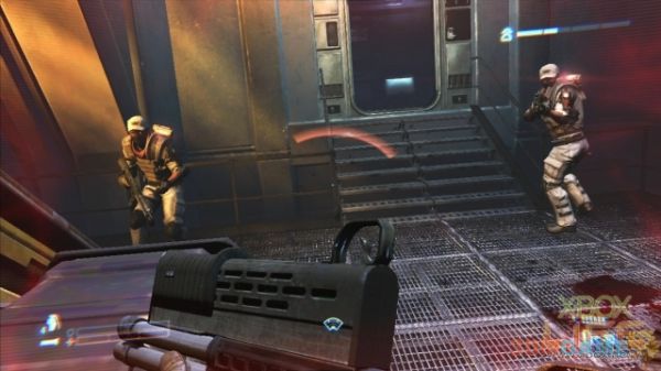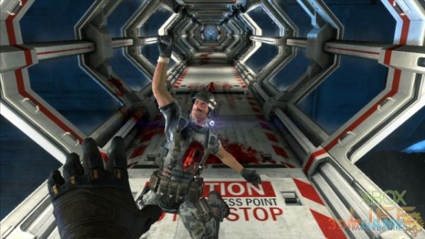 相较任务一的敌人都是异形,任务二的敌人全是人类,而且大部分都必须利用掩体蹲姿战斗。由于从任务二开始Winter开始有大量的头盔、弹药可以捡,加上可以龟在掩体后面回血,玩起来真的轻松多了。这边一定要提一下舰桥的攻坚战,做的还满有临场感的,可说是本游戏屈指可数的亮点之一。XD