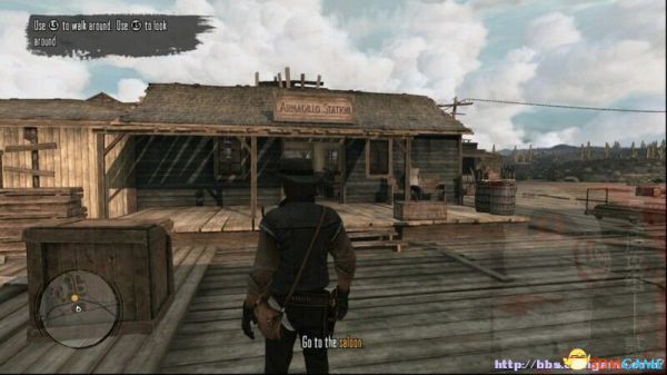 关卡攻略:1.John乘坐火车到达了Armadillo车站,来到黄点酒吧位置找到Jake。