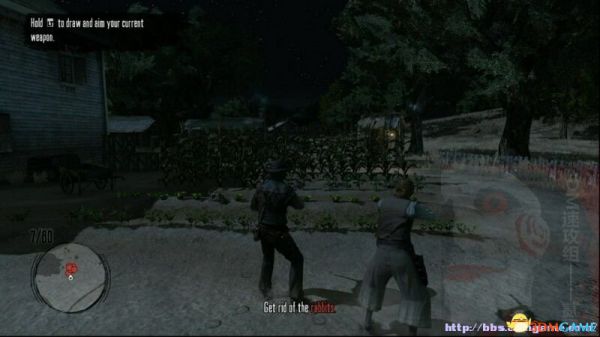 3.夜晚再次出门,获得猎枪后,来到马场消灭捣乱的兔子与狐狸。