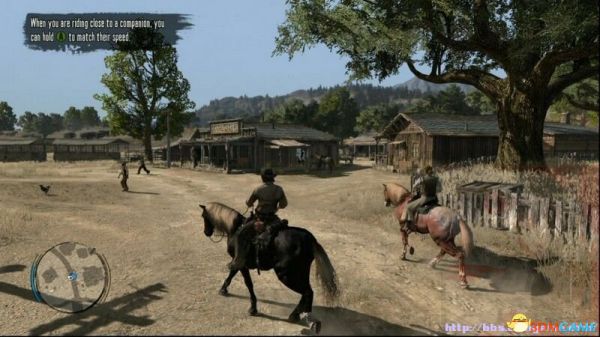 2.骑马紧跟,按A加速,快速按A速度更快,但会消耗左下角的蓝色体力条。