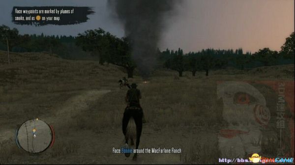 2.起床后出门,与Bonnie来一场骑马比赛,跟随篝火标记即可。