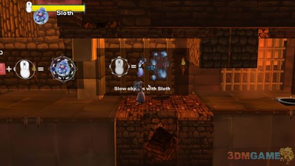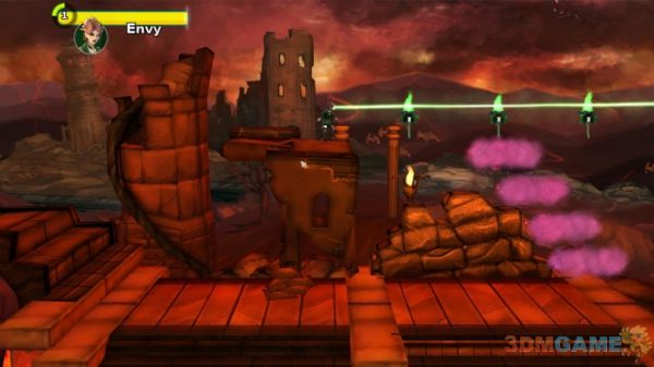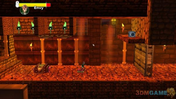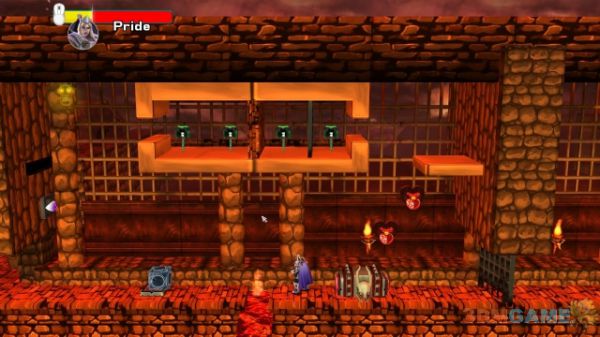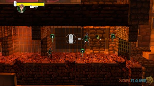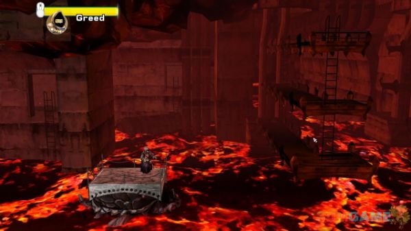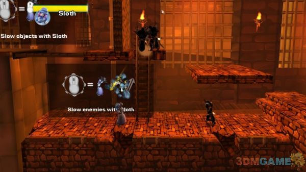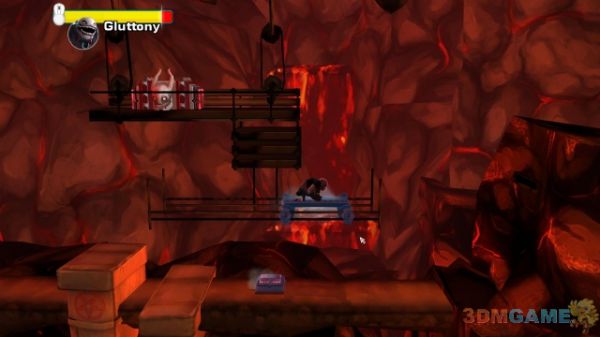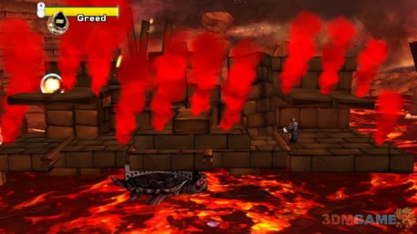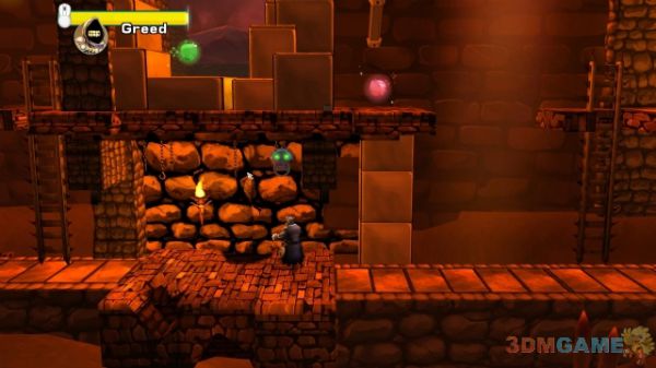 之后切换到GREED飞跃到右上平台,更换为GLUTTONY吞噬水晶球扔到下面开启机关,从而离开本区域。至此,本关卡结束