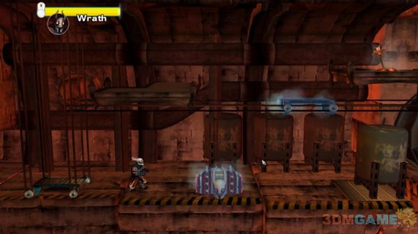 本关是让玩家熟悉四个角色的使用。第一个,WRATH。该角色可以使用其身体撞开障碍门,以及机械机关