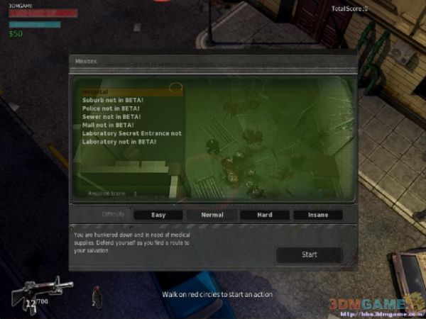 打开关卡界面可以选择你想要进行的关卡。由于该版本的BETA仅仅开启了两个关卡测试,所以玩家只能在这两个关卡之内进行游戏。当然还有难易度的选择